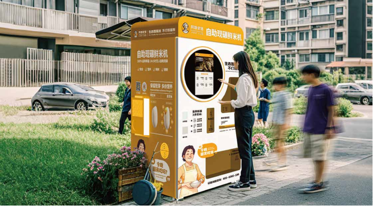 区隔传统的大米购买渠道,我们通过将鲜米机投放到社区、市场、商超等日常生活场景,打通新稻直达餐桌的最后1公里,为消费者提供更新鲜的覆膜米服务