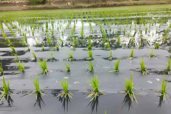 土壤水分均衡是保证水稻苗齐的关键因素之一,全生物可降解地膜能够均匀覆盖土壤,减少水分蒸发,并在降雨或灌溉后形成适宜的保水层,促进水稻均匀生长在干旱或半干旱地区,这一特性尤为重要。试验数据显示,使用全生物可降解地膜的田块,早期苗情更加整齐,出苗时间集中,苗株高矮差异明显减少。农户反馈,“以前是一丛一丛的,今年基本是一排排出来,看着就顺眼。”